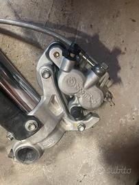 Vendo avantreno completo derivazione ktm exc 125/250/300/450/520/525. Ideale anche per trasformazione su altre moto come honda dominator, africa twin, transalp, yamaha xtz750 super teneré ecc modificando il perno del canotto. Il kit comprende: -Forcella wp 48 completa di copristeli -pinza brembo -pompa freno brembo completa di leva e tubo -cerchio takasago excel gommato -perno ruota -disco freno -piastre sterzo e forcella standard -piastra sterzo superiore ricavata dal pieno con raiser più alti. Vendo il tutto a euro 600 non trattabili, solo la piastra sterzo dal pieno vale 100 euro.