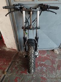 Avantreno forcella ruota freni Kawasaki GPZ1000RX, completo come da foto, materiale inutilizzato da diversi anni, può presentare elementi non originali (vedi parafango), vendo SOLO COMPLETO ad euro 220.