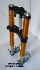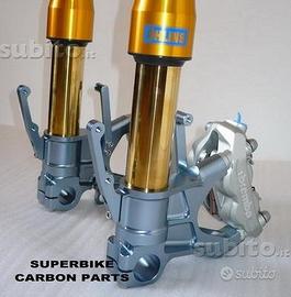 BUELL - per moto buell Avantreni speciali con forcelle ohlins. Il kit è costituito da: Forcelle Ohlins nix 30 modello 2014 (modello superbike), piastre di sterzo speciali ricavate dal pieno, piedini forcella radiali ricavati dal pieno (oppura ad attacco perimetrale), perno ruota , boccole e staffe parafango. Disponibili optionals: pinze radiali e dischi brembo, cerchi marchesini (anche pvm e dymag in carbonio) e parafango carbonio. Per realizzare i nostri avantreni speciali utilizziamo la Forcella di nuova generazione denominata NIX 30 prodotta da Ohlins nel 2014, che potete ammirare sulle moto del mondiale superstock, la più performante mai prodotta, con cartuccia nix e pistoni da 30mm! Piastre e piedini radiali oppure perimetrali sono ricavati dal pieno e progettati per assecondare qualsiasi desiderio tecnico ed estetico del cliente. CON I NOSTRTI AVANTRENI PER BUELL POTETE REALIZZARE BIDISCO AD ATTACCO RADIALE, BIDISCO AD ATTACCO PERIMETRALE, MONODISCO PERIMETRALE, MONODISCO RADIALE ETC.... TUTTO CON PARTI SPECIALI RICAVATE DAL PIENO E LE SPENDIDE FORCELLE OHLINS NIX 30.