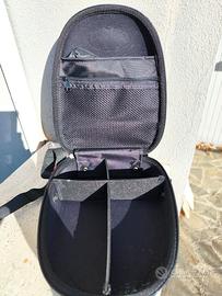 chiusura a cerniera,4 magneti di aggancio, maniglia per portarlo in giro, interno con scomparti regolabile e amovibile, telo anti pioggia, non spedisco misure circa 27 profondità x21 larghezza nel punto massimo x9 si altezza in cm.