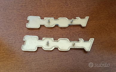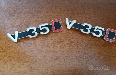Badge originali montati su Moto Guzzi V35C, i 2 badges erano montati sui fianchetti laterali della moto. Avredo la modificata sono stati smontati e custoditi in una scatola per anni e dopo un recente trasloco sono saltati fuori. Le foto parlano da sole, sono in ottime condizioni.