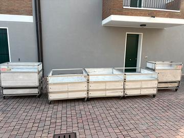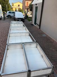 Banco da mercato in alluminio su ruote.
