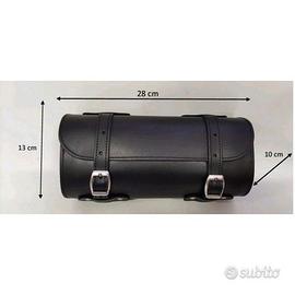 SPEDIAMO IN TUTTA EUROPA Altezza13 Larghezza28 ComposizionePelle Profondit10 Dettagli barilotto grande in pelle idrorepellente. attacco con cinghie . nero. porta attrezzi o porta oggetti.