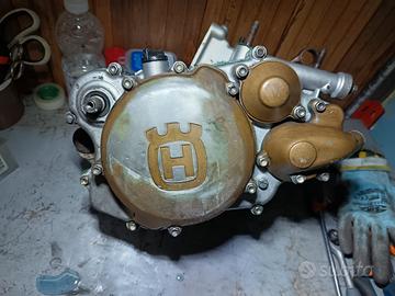 Vendo basamento motore senza accensione Husqvarna WR 125 del 2000 e cilindro con pistone condizioni come da foto il motore è da revisionare e il carter meccanico ha un paio di saldature ma funziona. spedizione disponibile