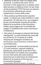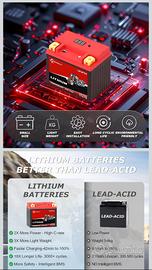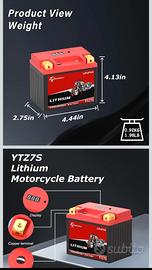 Batteria al litio per moto, compatibile con sistemi a 12V. Offre una capacità di 51.2WH e 4AH, con sistema BMS integrato per una maggiore sicurezza e durata.
