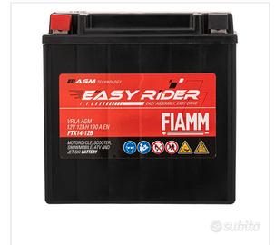 Batteria nuova in scatola, vendesi per errato ordine. Batteria Moto FIAMM Easy Rider AGM FTX14-12B (12V 12Ah 190A) - Pronta all'Uso, e Senza Manutenzione. Scopri la FIAMM Easy Rider AGM FTX14-12B, la batteria all'avanguardia progettata per offrirti massima potenza, affidabilità e praticità per la tua moto, scooter o altra applicazione sportiva. Parte della rinomata linea Motor Energy di FIAMM, questa batteria rappresenta una nuova generazione di accumulatori ad alte prestazioni, sfruttando la tecnologia AGM VRLA per garantire performance superiori e zero manutenzione. Specifiche Tecniche Dettagliate: - Modello: FTX14-12B (Parte della gamma FIAMM Easy Rider AGM) - Tensione: 12 V - Capacità: 12 Ah (Ampere-ora) - Corrente di Spunto (CCA EN): 190 A (Ampere) - Garantisce avviamenti potenti e affidabili anche in condizioni difficili. - Tecnologia: AGM (Absorbent Glass Mat) - VRLA (Valve Regulated Lead Acid) - Dimensioni (L x P x A): 151 mm x 87 mm x 147 mm - Polarità: Polo positivo (+) a sinistra