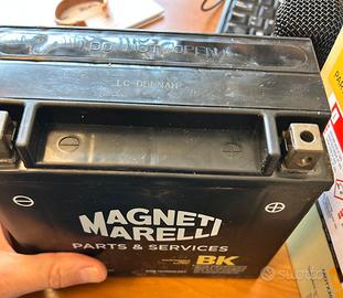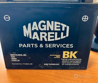 Vendo batteria moto Magneti Marelli YTX20HL-BS NUOVA, acquistata il 14 aprile 2026 e mai utilizzata. La batteria è già pronta all’uso, completa e attivata. Vendita per errore dimensioni, quindi inutilizzata. 🔧 Caratteristiche tecniche: Tensione: 12V Capacità: 18Ah Spunto: circa 310A Tecnologia AGM (senza manutenzione, sigillata) Dimensioni: 175 x 87 x 155 mm Poli: positivo a destra, negativo a sinistra Nessuna perdita di acido, alta resistenza a vibrazioni 💡 Batteria di fascia alta, ideale per moto con elevata richiesta di avviamento. 🏍 Compatibilità (equivalente standard YTX20HL-BS): Compatibile con modelli che montano codici: YTX20HL-BS BTX20HL BTX20L-BS M6023 Utilizzata tipicamente su: Harley-Davidson (principali): Dyna (Super Glide, Low Rider, Fat Bob, Street Bob) Softail (Breakout, Fat Boy, Heritage, Deluxe, Slim) Touring (Electra Glide, Road King, Street Glide) Sportster (alcuni modelli specifici) Altri veicoli compatibili: Quad e ATV Moto da turismo e cruiser Moto ad alta cilindrata con elevato spunto Moto d’acqua e motoslitte 👉 Compatibilità da verificare sempre con il codice originale della propria batteria. 📦 Condizioni: Nuova (mai montata) Conservata correttamente Completa come da acquisto 💰 Prezzo: €70NON trattabile (già molto inferiore al prezzo di mercato)