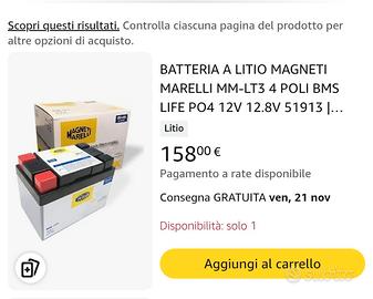 Batteria al Litio LifePo4 con Bms della Magneti Marelli MM-LT3 per moto scooter, nuova, completa di viti e distanziatori, precaricata pronta all'uso. Non spedisco.