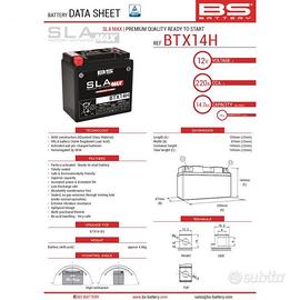 per BMW R 1200 GS e altri modelli Bmw (specialmente le bialbero) BATTERIA rinforzata(maggiore spunto) BTX14H 12V/14Ah/220/CCA A GEL SIGILLATA GIA' ATTIVATA BS SLA MAX BTX14H.
