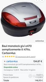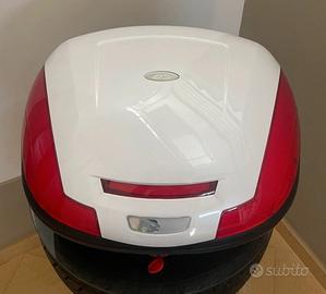 GIVI E470 Simply III Tech 47L Bauletto Moto, cover laccata bianca. Bauletto Nuovo. Segni nella parte posteriore come da ultima foto. Valore oltre 150 euro, venduto a questo prezzo per giacenza di magazzino. Molto capiente per due caschi, 47 litri. Le foto (tranne la penultima) fanno parte della descrizione) Prodotto per Aprila da Givi e marchiato Aprilia. Disponibile la sua piastra a richiesta a soli + 19 euro se in un unica spedizione. Dal sito Givi: Il baulettoGivi E470porta a 47 litri lo spazio interno massimo offerto dalla gammaMONOLOCK. Esteticamente importante e adattabile anche su motociclette di piccola e media cilindrata, l’E470offre la novità del cover è sostituibile per una maggiore personalizzazione Una raffinatezza estetica, finora prerogativa esclusiva della gammaMONOKEY. L’ampio catadiottro sui due lati del coperchio eleva lasicurezza di guida notturna. Volume 47 lt Capacità fino a2 caschi integrali Misure 32,5 x 42,5 x 55,5 cm