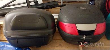 Vendo due bauletti per scooter o moto uguali da 35 litri, uno praticamente nuovo e completo di schienalino passeggero l'altro con qualche segno dovuto all'uso e al tempo senza piastre ma entrabi con doppia chiave. Vendo anche separatamente.