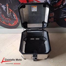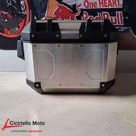 Bauletto AFRICA TWIN CRF 1100 in leggero e resistente alluminio con logo Honda e capacità di 42L in grado di contenere un casco integrale (salvo formati fuori standard). Schienale passeggero di serie, serratura configurabile con la stessa chiave della moto.