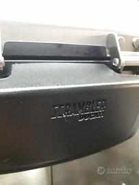 Realizzato con struttura in alluminio spazzolato ed anodizzato, personalizzazione Scrambler-Ducati sul frontale e logo "X" sul coperchio, che richiama il mondo enduro Scrambler. Offre un'ottima capienza, tale da contenere la maggiorparte dei caschi integrali in commercio. Dotato di chiusura a chiave. Portapacchi Scrambler compreso