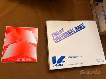 Bauletto baule moto scooter vintage Viganò Trust Completo di base, fasce riflettenti catarifrangenti da applicare, imballo originale, tutto nuovo mai montato, fondo di magazzino che risale agli anni '80 o primi anni '90. Ideale per sooter e moto di quell'epoca, come Piaggio Sfera, Piaggio Vespa, ZIP o Quartz, Vespa, Aprilia Amico o Scarabeo, Honda SH, Honda Dio, per citarne alcuni. Ma può essere montato su qualsiasi moto o scooter, su portapacchi ovviamente. Misure, larghezza x profondità x altezza, cm: 39 x 37 x 31