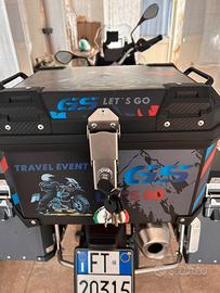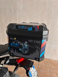 vendo bauletto (non originale) per bmw gs 900 e similari. Compreso di adesivi decorativi e chiave di apertura. Serratura funzionante sia in apertura che in blocco. Vendo per inutilizzo/passaggio a diverso bauletto. Prezzo leggermente trattabile.