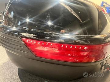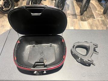Bauletto E460 Givi completo di piastra SR210 per montaggio su Moto Guzzi Breva 850-1100-1200, Norge 850-1200-1200 8V, 1200 Sport e Sport 1200 8VIl prodotto è usato e presenta qualche segno estetico di usura, come mostrato in foto.