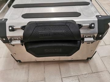 Bauletto universale in ottimo stato con due chiavi della givi di 58 litri alluminio trekker aitback completo di schienalino in gomma, separatamente si può avere anche piastra e attacco per moto morini x cape a parte nel prezzo.