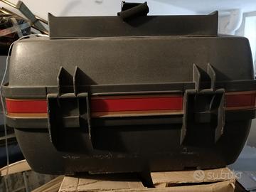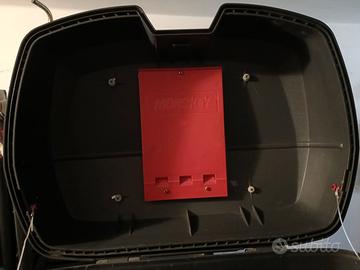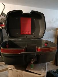 BAULETTO Modello:Givi E45 (serie Monokey). Capacità:45 litri, sufficiente per contenere due caschi integrali. Sistema di Aggancio:Utilizza la tecnologiaMonokey, uno standard robusto di Givi che consente l'apertura e lo sgancio dalla piastra con un'unica chiave. Utilizzo:Può essere montato sia come bauletto centrale (top case) che come valigia laterale in coppia. Dettagli Visivi scritta "MONOKEY" sulla sinistra e "E45 by GIVI" sulla destra.Catarifrangente centrale rosso.Finitura in plastica nera goffrata tipica dei modelli classici Givi.
