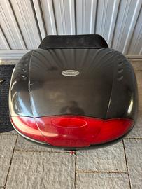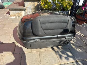 Usato con qualche segno, perfettamente funzionante e utilizzabile. Con schienalino passeggero. Verniciato nero honda. Piastra e viteria Doppia chiave