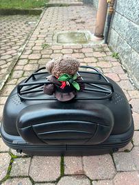 Bauletto Givi e460 46 litri con schienalino originale Givi e portapacchino in ferro sempre Givi -puo contenere due caschi integrali -compatibile con attacchi Givi Monokey-2 chiavi -Nuovo ( non si vende orsetto attaccato al portapacchino ) vendo per cambio modello bauletto -