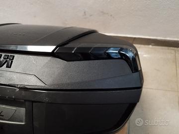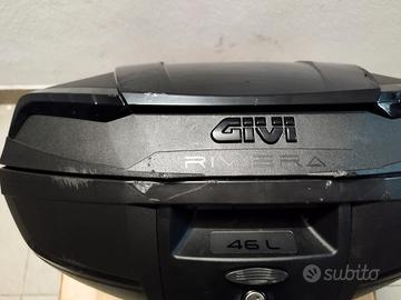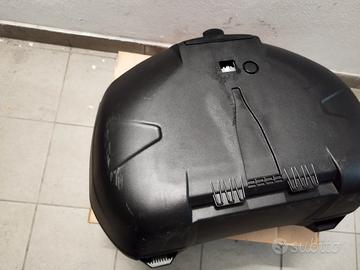 Bauletto Givi 46 litri MONOLOCK usato 1 settimana ma per un errore di fissaggio mi è caduto e si è graffiato come nelle foto allegate. Perfettamente funzionante, compreso kit piastra universale per poterlo fissare su qualunque portapacchi. Linea filante e moderna.