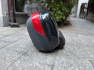 Bauletto in buone condizioni. Cover oroginale verniciata nera e schienalino passeggero originale. Sono presenti segni di usura ma nessun dsnno strutturale. Ottima tenuta all'acqua.