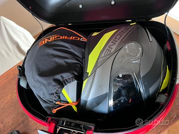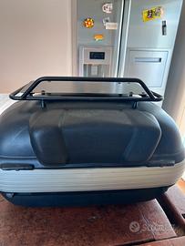 Bauletto Givi Maxia capienza 52 litri, compreso di schienalino e griglia portapacchi. Contiene 2 caschi integrali/modulari, compresa piastra, due chiavi disponibili, qualche graffio dovuto al normale utilizzo.