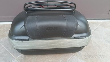 Bauletto Maxia 2, capacità 52 litri, con portapacchi e schienalino originale GIVI, qualche segno di uso ma esteticamente molto valido, doppia chiave. A richiesta piastra di montaggio Givi M5 + 30€. Possibile la spedizione.