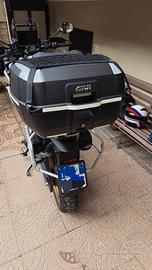 come nuovo bauletto con schienale e rete pora oggetti, capienza due caschi integrali compresa staffa ovviamente.le strisce gialle catariflegenti si possono anche togliere se vuoi