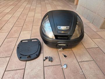 Vendo bauletto per moto/scooter marca GIVI, sistema Monolock. in buone condizioni generali. Molto capiente e robusto, perfetto per contenere comodamente un casca integrale e altri accessori. il set include: Bauletto GIVI (modello con catadiottri trasparenti/fumè). Piastra di fissaggio originale GIVI Monolock, Kit di montaggio (viti, dadi e staffe visibili in foto). Doppie chiavi originali incluse Condizioni: Il bauletto è perfettamente funzionante Serratura fluida e meccanismo di sqancio rapido dalla piastra intatto,