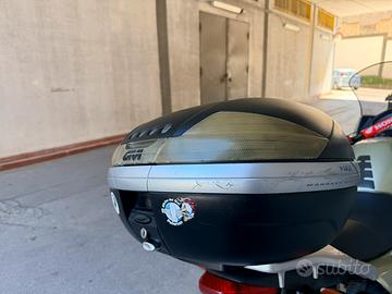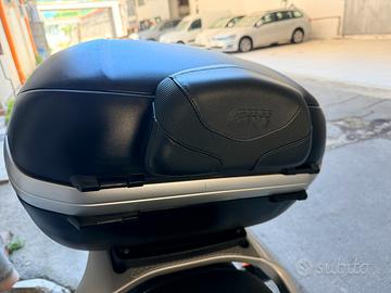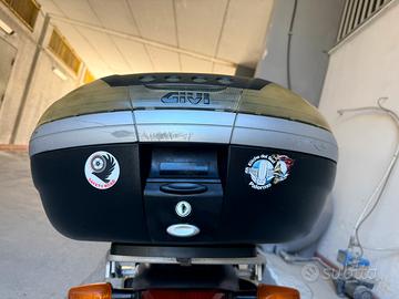 Bauletto Givi per moto completo di staffa/supporto. Completamente funzionante è perfetto in tutto. Solo lievi segni d’usura. Molto capiente e comodo. Attacco universale per moto e scooter.