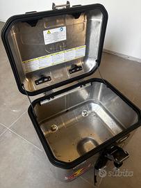Vendo bauletto GIVI Trekker Dolomiti da 46L già dotato di schienalino imbottito per far tacere il passeggero. Ovviamente non é inclusa la piastra di aggancio perché non sono un indovino e non so che stracazzo di moto guidi, quindi la piastra fattela tu in base al tuo cancello. Sistema Monokey, quindi in dotazione hai UNA SOLA CHIAVE (se la perdi chiama un esorcista perché io non ho doppioni). Gli adesivi che vedi sono una mia gentile concessione e se non ti piacciono te li gratti via tu con le unghie dopo avermi pagato. Prezzo 230€ non trattabili, se vuoi gli sconti vai da Aldi che vendono il bauletto in plastica che si lega col fil di ferro. Rigorosamente ritiro a mano perché se entro in un ufficio postale rischio l'arresto. No perditempo, no collezionisti di foto di metallo, prendi il cubo e vai a farti il giro del mondo il più lontano possibile da me.