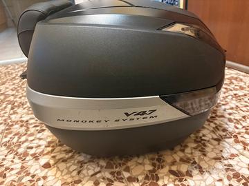 Bauletto givi v47 con sua staffa per sgancio rapido, piu due chiavi. Tenuto molto bene Piu regalo schienale specifico. Come da foto. Per chi vuole a parte ho maniglioni originali kymco ak 550 per portapacchi