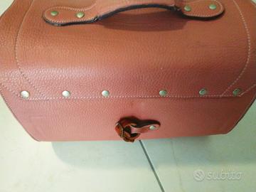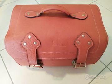 Bauletto Vespa in vera pelle con supporto metallico per il fissaggio al porta pacchi posteriore. Utilizzato per vespa px.