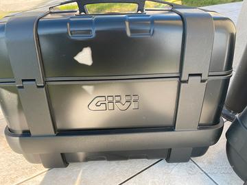 Bauletto: KAPPA mod. KGR52 GARDA per attacco MONOKEY + attacco monokey GIVI cap. 52 litri, per due caschi modulari - vedi sito web KAPPA. Fornisco con coppia di chiavi. Borse valigie laterali; n. 2 GIVI TRK33B TREKKER BLACK LINE, cap. 33 litri ciascuna. Fornisco con coppia di chiavi. Set vendibili anche separatamente. Disponibile telaio per valigie o borse laterali, per suzuki v-strom DL650A ABS anno 2012. Bauletto euro 180 Staffa Givi monokey euro 40 Valigie laterali euro 300 Tutto euro 500 telaio valigie per v-strom euro 80