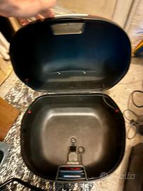Bauletto moto capiente completo di piastra e staffe . Pagato 140 euro Vendo 35 Bauletto 15 piastra e staffe. 40 tutto