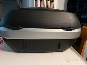 Vendo bauletto per moto givi monokay system V47. Non è stato mai montato su un mezzo ma presenta una strusciata(visibile in foto), avvenuta in uno spostamento in cantina; il bauletto ha 2 chiavi. Insieme al bauletto vendo attacco universale givi monokay.