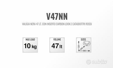 Bauletto GIVI V47NN nero con inserto Carbon Look e Catadiottri Rossi Ha una capienza di 47 litri e La sua forma particolare permette di alloggiare fino a 2 caschi Integrali o Modulari Portata massima / peso massimo: 10 kg Misure 33 x 48 x 60 cm Il bauletto V47 di Givi è la soluzione ideale. Vano interno da 47 litri capace di trasportare fino a due caschi modulari o integrali, ed è perfetto sia per viaggi lungi che per l'utilizzo nell'ambiente cittadino di tutti i giorni Il bauletto ha una chiusura ermetica che non permette l'infiltrazione d'acqua o di liquidi, e presenta parti irrobustite che garantiscono l'integrità degli oggetti al suo interno. I catadriotti nelle parti laterali, in colorazione rossa, aumentano la visibiltà del veicolo in scarse condizioni di luce. Si effettua spedizione Corriere +€15,00 con pagamento: bonifico bancario, paypal Possibile visionare i prodotti presso il nostro magazzino Freeontime indirizzo: Via Massimo D'Azeglio, 11 20831 Seregno (MB) Tel. 0362-241002 Tel: 3290077336 Apertura / Orari: LUN-VEN: 10-12,30 14-19,30 SABATO 10 Orario continuato 19,30 DOMENICA: 14,30-19,30