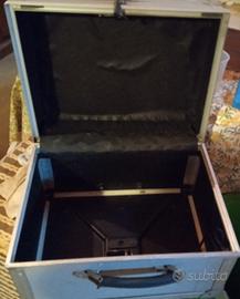 Valigetta porta-casco con chiave, in alluminio, utilizzata come bauletto per scooter come l'Aprilia Scarabeo. Manca la fodera interna