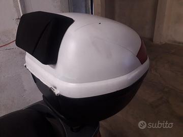 Bauletto per scooter modello Action può contenere un casco integrale lasciando spazio ad altre cose come guanti, parapioggia, etc. Completo di doppia chiave, paraschiena, supporto e piastra.