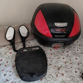 Bauletto marchiato Malaguti, con piastra di aggancio e specchietti retrovisori, da vendere anche singolarmente.