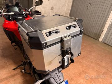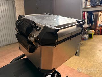 Bauletto posteriore 42 L. per moto Kappa KFR420A K-Force MONOKEY in alluminio naturale, completo di piastra in alluminio per installazione (mod. KM9B, compatibile con tutti i bauletti di tipo MONOKEY), con i seguenti optional: schienalino in poliuretano e rete elastica interna porta oggetti.