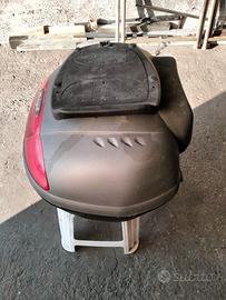 vendo bauletto scooter. porta due caschi. con staffa di ancoraggio da montare su scooter e appoggia schiena già istallato per passeggero. att l'unico difetto è che c'è un gancetto come si vede in foto rotto basta semplicemente mettere una vite