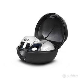 Bauletto da 39 litri, con capienza per un casco integrale o per due caschi: un integrale e un jet. Coniuga design e funzionalità, distinguendosi per leggerezza e ottimizzazione dello spazio disponibile.. E' dotato di chiusura a pressione ( Press Lock System) e può essere equipaggiato con cover, disponibile come optional in diverse colorazioni. SH39 rappresenta una nuova generazione di bauletti per moto, realizzati con soluzioni tecniche innovative e con la massima cura dei dettagli estetici.Progettato per chi cerca il massimo livello di stile e raffinatezza, il bauletto SH39 offre una cura meticolosa dei dettagli tecnici ed un design all'avanguardia, con forme arrotondate e catadiottri integrati, realilzzati in due colorazioni (nero lucido e bianco fumé). La parte posteriore del bauletto presenta una forma concava, che favorisce l'alloggiamento dello schienalino (opzionale) ed il comfort del passeggero. È il bauletto più leggero della sua categoria, grazie ai materiali di altissima qualità e resistenza utilizzati, nonché alle innovative tecniche di progettazione delle nervature di supporto, che permettono di ridurre al minimo lo spessore di base e coperchio. Il volume interno ottimizzato consente di sfruttare appieno la capacità reale di 39 litri del bauletto. Con una capacità di 2 caschi Jet o un casco modulare e un jet, è la dimensione ideale per muoversi in città o per brevi viaggi, in scooter o con moto di media cilindrata. E' equipaggiato con sistema di chiusura/apertura Press Lock, un sistema a pressione semplice ed ermetico. Come tutti i bauletti SHAD, può essere aperto e chiuso con una sola mano, senza l'utilizzo della chiave, necessaria soltanto quando vogliamo fissare il bauletto alla piastra sulla moto. La fessura alla base del catadiottro funge da maniglia ergonomica, per facilitare il trasporto del bauletto. Come altri bauletti (ad eccezione di TR48/TR37) per moto SHAD, include la griglia e il kit fissaggio. Dimensioni: 51 cm x 32 cm x 43 cm. 39litri