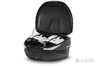 possibilità di spedizione o ritiro in negozio Il bauletto per moto SH 58 - SH58 X espandibile con finitura in carbonio , con volume regolabile in 3 posizioni (46-52 e 58 litri), ha la capacitá per 2 caschi enduro, oltre ad accessori da viaggio. (Piastra universale inclusa) Tecnologia all'avanguardia e design innovativo, al bauletto eXpandible le è valsa il prestigioso premio di design Reddot Design Award 2017, un riferimento tra designer e produttori, l'unico bauletto sul mercato regolabile fino a 58L. La sua struttura garantisce elevata rigidità e resistenza con il minimo peso, e ha anche delle strisce di limitazione interne che assicurano che il carico interno non si sposti. Offre la massima sicurezza grazie al suo innovativo sistema di chiusura ermetica "Smart Lock System". Questo sistema ti consente di tenere aperta la valigia senza poterla rimuovere, oltre a poterla aprire e chiudere senza la necessità della chiave, in questo modo utilizzerai solo la chiave per bloccarla. Apertura con una mano. Il sistema brevettato che regola il volume della SH58X, potendo espandersi o ridurne le dimensioni, la rende un bauletto altamente funzionale e pratico, adattandosi in ogni momento alle esigenze del motociclista: - Taglia L: offre un volume di 46L, perfetto per il trasporto di oggetti di uso quotidiano. - Taglia XL: 52L si raggiunge al secondo livello, molto utile per le uscite brevi del fine settimana. Con capacità per due caschi modulari. -Taglia XXL: il volume raggiunge i 58 litri, abbastanza per ospitare tutto ciò di cui hai bisogno in quell' avventura che hai sempre sognato. Con capacità per due caschi enduro. Lo schienalino (non incluso) ha due pezzi, composti da due strati di schiuma poliuretanica