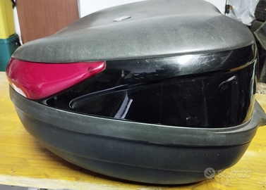 Vendo bauletto Suzuki usato compreso di piastra da fissare sul portapacchi. Era montato su un v strom 650 del 2004. Sono presenti graffi dovuti ovviamente all'uso quasi ventennale e un pochino di gioco tra baule e piastra rimediabile con tamponi nuovi in gomma.