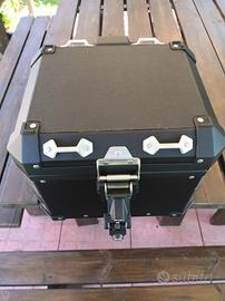 In perfetto stato, senza segni d'usura, top case iriginale bmw adv alu, nero, con adesivi in 3d (rimovibili) e copertura antigraffio sulla parte superiore, completo di schienalino, rete interna e nottolini da codificare con la propria chiave. Valore euro 900,00 in conc. Bmw.