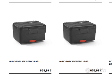Vendo TopCase / Bauletto BMW R1250GS R1200GS F750G F850GS (Nero) Riferimento BMW 77438569672 Schienale per Bauletto Top Case, Riferimento BMW 71607688877 Ottime condizioni, meccanismo Vario perfettamente funzionante, la maggior parte dei bauletti usati presentano problemi con il meccanismo, spesso molto duro, addirittura a volte completamente bloccato. Prezzo non trattabile, già ribassato. Modelli di moto compatibili F 750 GS - K80 - (0B08 0B18) [2016-2023] F 800 GS - K80 - (0K51, 0K53) - [2023 -] F 850 GS - K81 - (0B09 0B19) - [2016-2023] F 850 GS ADVE - K82 - (0K01 0K03) - [2017-2023] R 1200 GS 2013 - K50 - (0A01 0A11) - [2012-2016] R 1200 GS 2017 - K50 - (0A51 0A61) - [2016-2019] R 1200 GS Adve 2014 - K51 - (0A02 0A12) - [2013-2018] R 1250 GS - K50 - (0J91 0J93) - [2018-2020] R 1250 GS 2021 - K50 - (0M01, 0M03) - [2020-2023] R 1250 GS Adventure - K51 (0J51 0J53) - [2018-2020] R 1250 GS Adventure 2021 - K51 - (0M11, 0M13) - [2020 - 2024]