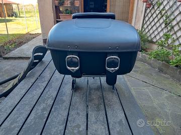 bauletto in pelle originale HD, montato su Road King del 2003, sgancio rapido , poggia schiena passeggero.8n buone condizioni, non usato da anni.