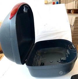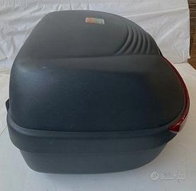 BAULETTO 48 Lt, x 2 CASCHi PER SCOOTER E MOTO. Bauletto in plastica rigida ,adatto per scooter ,moto e motocicli.-Può contenere 2 caschi: uno integrale ed uno Jet-.Dimensioni cm 52x42x32 .-Colore grigio scuro opaco con striscia posteriore catarinfrangente rossa di sicurezza-Include piastra di fissaggio universale conpleta di kit di viti e clips di fissaggio.Con la stessa chiave si chiude il bauletto e lo si fissa allo scooter- -Con un bottone la valigia si sgancia velocemente dallo scooter e diventa trasportabile con la maniglia integrata-Portata max 5 Kg-Peso bauletto 2,5Kg. In visione a Milano-Prezzo di listino 86€- Prezzo scontato trattabile-In regalo antifurto blocca disco o catena,.In acciaio cementato con chiave.